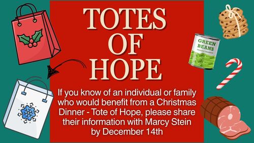 This 11th Annual tradition is proof that hope doesn't have to be flashy to be powerful. It can look like a warm meal, a thoughtful delivery and a simple reminder of God's love!If you've never participated before, this is your sign to jump in the tote! Whether you donate items, help pack or offer a name of someone who could benefit from a Tote of Hope, there's always room for everyone to be part of something truly special at St. Peter's Church of Oldtown Valley!